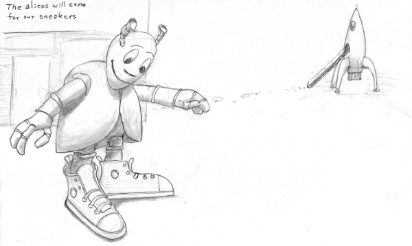Recent sketch Apparently, in this galaxy, the invention of sneakers is unique to Earth.